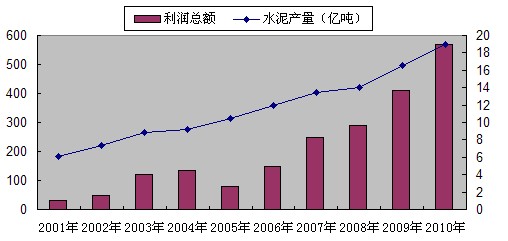 第四,企業(yè)效益不斷提升,全行業(yè)利潤(rùn)總額屢創(chuàng)新高,特別是在“十一五”期間,水泥利潤(rùn)總額的增長(zhǎng)幅度始終高于產(chǎn)量的增長(zhǎng)幅度(見圖4),噸利潤(rùn)水平基本達(dá)到了歷史最好水平。