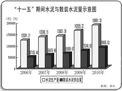 通過(guò)結(jié)構(gòu)調(diào)整,發(fā)展和淘汰并舉,水泥散裝化程度穩(wěn)步提高。據(jù)統(tǒng)計(jì),2010年,全國(guó)平均水泥散裝率達(dá)到48.1%,比上年末的46.27%提高了1.83個(gè)百分點(diǎn),比“十五”末36.61%的散裝率提高了11.49個(gè)百分點(diǎn),平均年提高2.3個(gè)百分點(diǎn)。