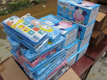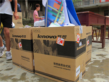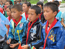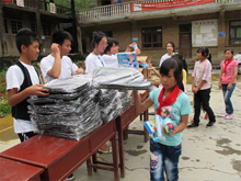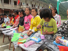 中聯(lián)重科混凝土機械公司2011年“暢享中聯(lián)快樂行”夏令營正式啟動 中聯(lián)重科混凝土機械公司為下飼小學(xué)學(xué)生贈送的書包和文具