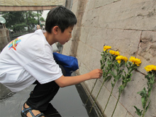 夏令營成員韶山毛主席銅像前合影留念 夏令營成員為犧牲的紅軍戰(zhàn)士敬獻小菊花