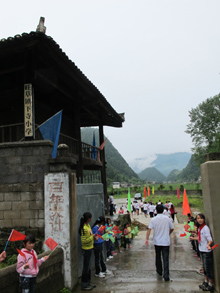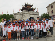 下飼小學(xué)學(xué)生青巖古鎮(zhèn)前合影留言 夏令營同學(xué)們一起前往貴州遵義綏陽縣旺草鎮(zhèn)下飼小學(xué)