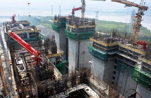 據承擔三峽升船機施工的中國葛洲壩集團公司現場施工負責人介紹,三峽大壩升船機工程建設進展順利。目前,上下閘首土建施工基本完成,塔柱土建施工已澆筑到170米高程以上,預計到9月底將完成混凝土澆筑,達196米設計高程,施工逐步進入設備安裝階段。三峽升船機預計2015年正式投入運行,將主要為客輪提供快速過壩服務。圖為施工人員在三峽升船機建設工程現場施工。