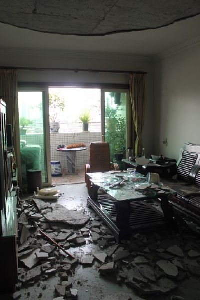“只是批燙(混凝土)脫落而已,沒什么大不了。目前的情況并沒有你們想象得那么嚴重,咱們幫你修繕一下就可以了。”拆遷辦工作人員如是說。據(jù)劉太反應(yīng),去年10月份拆遷辦已經(jīng)幫她修補過一次天花板。當時的情況是天花板漏水,而當時的修理也只是簡單的處理了一下。