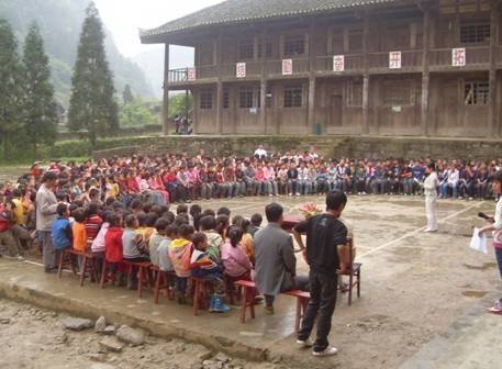 因修建時間較早,現(xiàn)教學樓比較陳舊。學校共兩幢教學樓,共有教室8間,簡陋的圖書室和儀器室各1間,辦公室2間。學?,F(xiàn)有教師12人,學生267人,7個教學班。