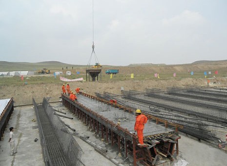近日,G7京新高速公路集呼段首片箱梁混凝土澆筑順利完成。此箱梁長20米,高1.2米,頂板橫坡為0.2,梁底板設置4個φ100的通氣孔,采用后張法工藝施工。該片箱梁是全線施工的一個轉折點,標志著施工進度又邁入了一個新階段。