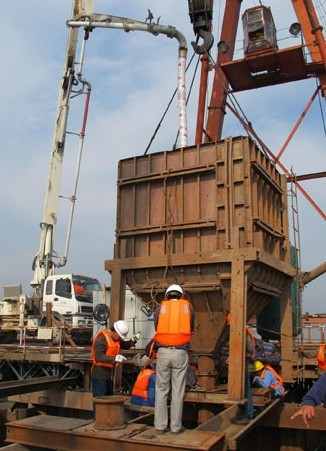 9月25日13時10分,中鐵大橋局六公司如皋港港口連接線(G204南延)二期工程長青沙二橋首個水中墩圍堰基礎成功封底,拉開了水中墩承臺基礎施工的序幕。