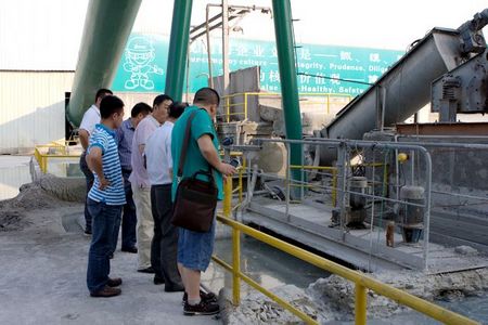 會后,全體參會人員一同參觀了位于江北區港城工業園區的重慶永固新型建材有限公司。就簡國釧總經理在會上介紹的企業安全管理,廢水回收、揚塵控制、噪音控制等等情況進行了實地考察。