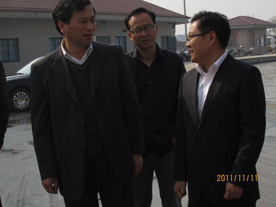 2011年11月10日,天氣晴朗,上午10時許,如皋市市長姜永華、副市長繆小華、磨頭鎮黨委書記張書強、磨頭鎮鎮長范小強一行視察南通偉鑫混凝土有限公司。