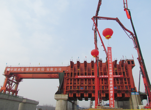 12月2日,經過30個小時的連續作業,中線控制性工程──雙洎河渡槽工程首跨槽身混凝土澆筑成功,雙洎河渡槽正式進入主體施工階段。