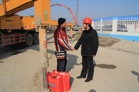 1月25日年初三早上,南京市預拌混凝土管理處負責人萬仁瑜一行兩人來到位于河西樂山路的青奧會議中心項目現(xiàn)場,認真聽取了施工單位中建八局三公司的項目負責人對該工程項目的情況介紹和對預拌混凝土企業(yè)的建議和要求。該工程為南京市青奧會項目的重點工程共需要混凝土60萬方左右,雖然工期緊、任務重、技術(shù)要求高,對混凝土供應企業(yè)有著嚴格的要求,但是混凝土企業(yè)的供應、服務和質(zhì)量等贏得了現(xiàn)場人員的充分肯定。