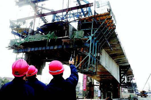 18日,荊州拍馬公路橋正在進(jìn)行箱梁混凝土澆筑。湖北省航運(yùn)管理部門利用引江濟(jì)漢引水干渠,開辟長(zhǎng)江、漢江間的人工航道,工程管理方趕在引水渠未全面開挖之機(jī),提前開工60多個(gè)通航配套施工項(xiàng)目,既節(jié)約了建設(shè)成本,又爭(zhēng)取了通航時(shí)間。