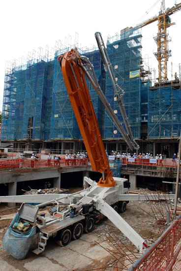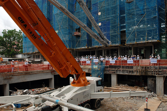 論壇期間,主辦方在新加坡工地現場向來賓展示了CIFA品牌62米6節臂碳纖維泵車,現場泵送。新技術新材料的應用,大大提高了設備的靈活性、便利性、安全性和施工效率,得到了與會嘉賓的高度認可。