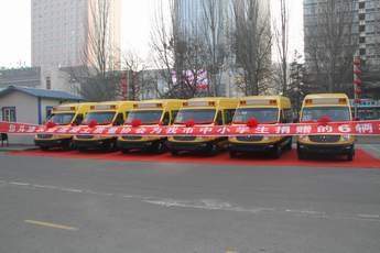 包頭建筑業混凝土質量協會30家會員單位捐贈包頭市教育局的6輛17座專用校車
