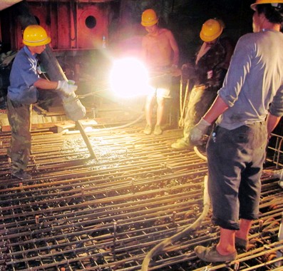 是日下午14:30,業主京福公司南平指揮部、局京福經理部相關領導在項目總工程師施福楓的陪同下,對箱梁的鋼筋綁扎、預埋件埋設位置、安全措施防護等方面進行了詳細檢查。下午16:00,所有準備工作完成后,準時對溪頭村特大橋進行澆筑。經過10個小時的施工,溪頭村特大橋于2012年4月1日凌晨2:00澆筑完成。