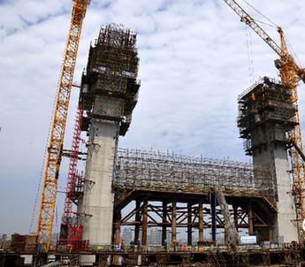 武漢鸚鵡洲長(zhǎng)江大橋三號(hào)塔下橫梁為兩端固結(jié)的預(yù)應(yīng)力鋼筋混凝土梁,共分為2次澆筑,第一次澆筑4米,第二次澆筑3米。此次混凝土澆筑共567方混凝土。武漢鸚鵡洲長(zhǎng)江大橋建成后將成為世界上跨度最大的三塔四跨懸索橋。