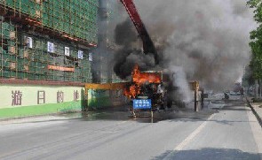 “我正在車上進行混凝土輸送作業,突然就從車底噴出一團大火,瞬間將車頭和輸送泵吞噬了。我馬上下車檢查,見情況不妙,車上又沒有滅火器,馬上報了火警。”5月7日上午,桐廬瑤琳西路上一輛正在施工作業的混凝土泵車發生自燃,司機黃師傅想到當時的那一幕,還是心有余悸。 7日上午9時30分左右,司機黃師傅正在混凝土泵車上進行混凝土輸送作業,剛剛輸了一半混凝土,突然從車底冒出大火,整個車頭和輸送泵都被大火包圍,車上也沒有配滅火器,情急之下,馬上撥打了119求救。接到報警后,桐廬消防中隊迅速出動。在距離現場500米外,救援官兵就看到不斷有黑色的濃煙向上冒出。