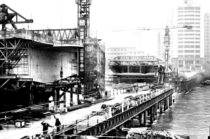 據(jù)中鐵七局元通黃河大橋項目經(jīng)理部副經(jīng)理周東坡介紹,元通大橋為四墩三跨,橋面的澆筑,以中間兩個主橋墩為中心同時向南北兩個方向澆筑延伸,兩主橋墩各有17個對稱懸臂現(xiàn)澆段和1個組合龍段,每個箱梁澆筑需要十天到十二天時間,所以,預(yù)計今年年底就可以實現(xiàn)主橋體的貫通。