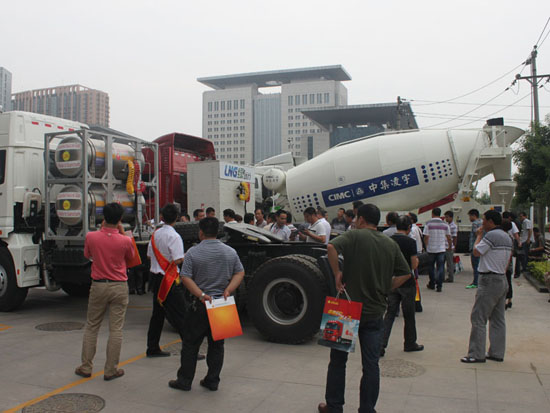 參觀樣車環節,中集凌宇上裝聯合卡車底盤的LNG混凝土攪拌運輸車以其靚麗的外觀和卓越的性能成為車展的焦點,有的客戶向銷售經理詢問價格;有的客戶上車試乘;有的客戶與技術人員研討產品性能,展車周圍集滿了參觀的嘉賓。雖然此次參觀的客戶大多都是行業間相關企業嘉賓,但對中集凌宇LNG攪拌車產品的認可,也使得中集凌宇的參展人員深感自豪,更加堅定了我們做好罐車、“打造中國罐車第一品牌”的信念。