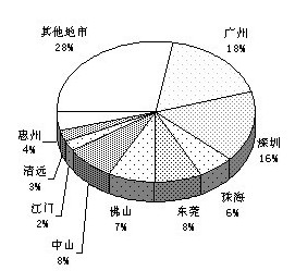 2011年我省預拌混凝土的產量仍主要集中在經濟較發達的粵中地區,包括廣州、深圳、東莞、 佛山、珠海、惠州、中山、江門和清遠等地,這些地區預拌混凝土的產量占了全省近78%。如圖3: