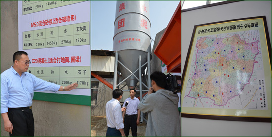 隨后,央視采訪報道組來到了提供混凝土的青島市農村推散平度利東直銷配送中心,與想象中的完全不同,名稱不起眼的配送中心完全是一個規模略小的現代化攪拌站。現場只有2個人,但原料篩分、儲存、輸送、配方、計量、攪拌、裝車都是自動化的,車、罐、實驗室、周轉箱一應俱全,難怪這么快就將拌好的混凝土送到了客戶現場。記者找到了配送中心的負責人,也是青島利東機械有限公司的總經理李向東,李總介紹說:“以往農民建房自己采購建筑材料,費時費力不說,使用的袋裝水泥不僅成本高,而且拆袋和現場攪拌產生粉塵污染環境,還容易因為受熱受潮帶來強度的損失,農民自己調配的混凝土在質量上也往往達不到要求。我們利用精確的計量設備和電腦控制手段,對農民需要的混凝土和砂漿,按強度要求的配比稱量不同比例的水泥和砂石。即提高了房屋建筑質量,同時減少現場攪拌帶來的環境污染,實現了農村散裝水泥發展、農民利益、環境保護、水泥生產企業、水泥制品企業、設備制造業多方共贏的綜合效益。”