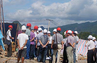 圖為貴廣鐵路桂林指揮部領導視察松樹嶺雙線特大橋20號墩灌漿現場