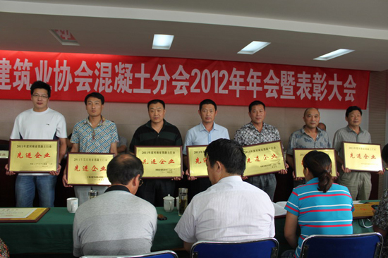 2012年7月17日,河南省建筑業協會混凝土分會2012年年會暨表彰大會在古都開封隆重召開。河南省建筑業協會李娟副秘書長、省建協混凝土分會常傳立會長和王雁鈞、鮑威、張作旺、李相平、劉家林副會長、劉志杰副秘書長等領導以及本屆理事會的理事、常務理事、先進企業、會員單位等90多名代表參加了會議。