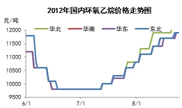 近期在華北公司的帶動下,環氧乙烷繼續展開上調態勢,華北上調300元/噸執行12200元/噸,而其他區域跟進200元/噸,執行11900元/噸左右;近期華北地區由于供應面緊俏明顯,頻繁帶動上調氛圍,加之天津石化兩套環氧乙烷裝置進入檢修期,所以對華北區域的供應面可謂雪上加霜,這從一定層面上更加堅定華北上調價格的信心以及動力;而對于華東區域,揚子石化開車在即,聽聞原本計劃近期開車,但由于開車受阻延期一周左右,所以考慮揚子石化即將開車,華東跟漲氣氛并不積極;華南區域由于僅茂名石化一家工廠,所以需求面也略顯單一,當地供應面未有明顯的緊俏,合理狀態;東北區域受盤錦檢修影響,供應面略緊張,當地下游生產狀況不是非常理想,跟漲積極性顯高漲。卓創預計,短線環氧乙烷拉漲頻率或將放緩,因華北目前是風向標,當地依舊緊俏所以仍有上調的可能性,謹慎跟進。