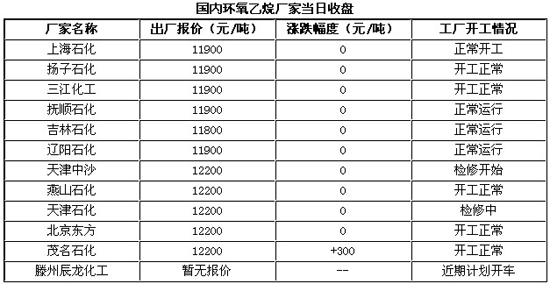 今日,國(guó)內(nèi)環(huán)氧乙烷再次掀起上漲高潮,中石化華北公司引領(lǐng)調(diào)漲,計(jì)劃明日上調(diào)500元/噸,中石化華東計(jì)劃上調(diào)300元/噸執(zhí)行12200元/噸,華南公司則在今日選擇直接上調(diào)300元/噸執(zhí)行12200元/噸;此次上調(diào)主要?jiǎng)恿?lái)自原料乙烯近期漲勢(shì)明顯,加之華北區(qū)域供應(yīng)緊俏局面難以緩解,工廠奮力繼續(xù)挺市;因后續(xù)工廠開車居多,滕州辰龍以及盤錦裝置計(jì)劃9月中旬左右出量,湖石三江合資裝置或?qū)⒃?0月份左右開車;所以后續(xù)供應(yīng)緊俏局面也將陸續(xù)緩解。