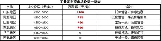 各地市場方面,山東地區(qū)主流現(xiàn)匯商談價格上調(diào)100元/噸至4900-5000元/噸之間,少量承兌商談價格在5100元/噸附近,另外山東萊鋼昨日裝置重啟,目前價格暫定為5050元/噸;河北地區(qū)主流報盤在5100-5400元/噸之間,主流商談價格上調(diào)至4900-5000元/噸之間,其中唐山地區(qū)商談價格略高,固體萘現(xiàn)匯商談價格在4950-5100元/噸之間,液體萘商談價格在4850-4900元/噸之間;華中地區(qū)商談價格維持在4750-4900元/噸之間,高位多為承兌商談,部分低位商談價格逐漸退市;山西地區(qū)市場商談多在4750-4900元/噸之間;東北地區(qū)主流商談價格在4600-4800元/噸之間;西北地區(qū)主流商談價格在4600-4850元/噸之間。