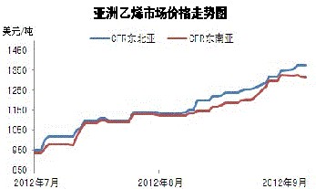 首先,從環氧乙烷供應面分析:華北地區,天津石化以及中沙石化8月中下旬今日檢修期,而北京東方為配合十八大宣布9月15日停車,所以華北地區僅燕山石化一家有量產出,一天60噸左右的量,華北地區供應面可謂緊俏過火;華東地區;揚子石化7.12日開始停車,8月中下旬裝置正常開車,但負荷一直維持在6-7成左右,產出量不高;安徽豐原8月停車一周左右,滕州辰龍化工自4月份停車,日前計劃9月中旬左右開車出量;華東地區因下游衍生物較為集中,在檢修集中的同時,供需矛盾較為明顯;東北地區,遼寧北化8.1日進入檢修期,9月中旬左右出量,遼陽石化以及吉林石化前期陸續檢修過,所以當地供應面也處于緊張行情,部分下游因EO供應短缺,一直處于低負荷運行;由此來看,近期裝置檢修十分集中,在供不應求的今天,環氧乙烷不漲都不行。
