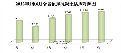1至6月全省預拌混凝土供應情況對照如下圖: