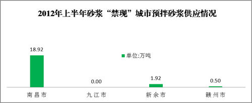 預拌砂漿供應量為21.34萬噸,同比增長59.16%;使用散裝水泥4.17 萬噸、廢棄物1.69萬噸。其中,南昌市預拌砂漿供應量為18.92萬噸,占全省88.66%。