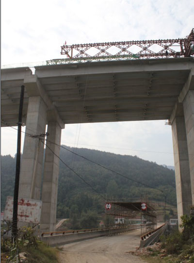 近日,隨著最后一片長(zhǎng)30米、重80噸的鋼筋混凝土預(yù)制T梁被穩(wěn)穩(wěn)當(dāng)當(dāng)?shù)丶茉O(shè)在25#橋墩之上,谷竹高速公路關(guān)鍵控制性工程——青峰特大橋梁板架設(shè)日前成功跨越地方馬欄河大橋。