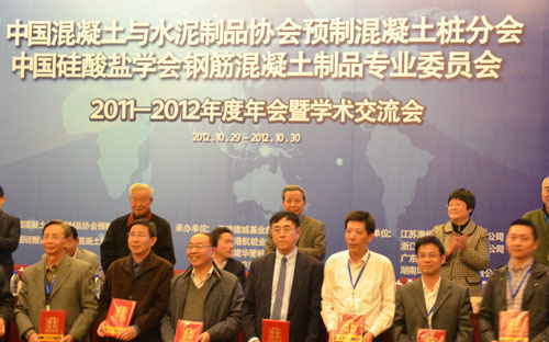 中國混凝土與水泥制品協會預制混凝土樁分會、中國硅酸鹽學會鋼筋混凝土制品專業委員會2011-2012年度年會暨學術交流會2012年10月29、30日在天津召開。