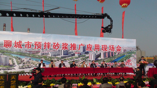 聊城市預拌砂漿推廣應用現場會在東阿縣舉行,任曉旺、丁建一、于東威等出席會議;東阿縣成為山東省第一個禁止現場攪拌砂漿的縣級城市。