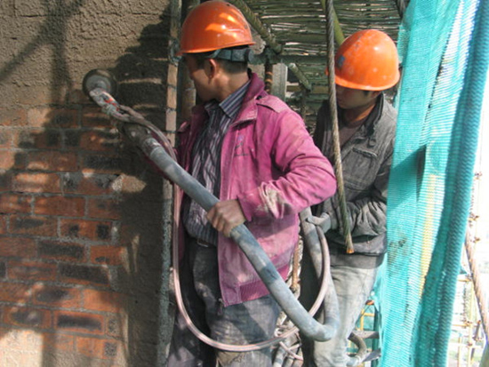 預拌砂漿是工程建設先進生產力的發展方向和必然要求,不僅提高工程建設質量和施工效率,降低粉塵污染,而且能實現綜合利用,節能減排,較自攪砂漿工藝有很大進步,但這種進步若停留原始的手抹灰工藝上,便失去了發展預拌砂漿的真正意義,無形給預拌砂漿大面積推廣應用增加難度,長期下去,預拌砂漿生產企業將難以維持生計。對此,湖州市在預拌砂漿推廣應用和砂漿“禁現”工作過程中,積極探索解決推廣預拌砂漿的瓶頸問題,在實行政策推動、監督檢查、服務對接等舉措的同時,著力推進預拌砂漿機械化施工。在去年天鴻-天際這個全市有影響力的建設工程成功召開預拌砂漿機械化噴涂現場會基本上,日前又在求是電子、國安局1001工程等3個在建項目全面實施機械化噴涂,通過預拌砂漿機械化施工讓建設、施工等單位親身體會到了實施機拌砂漿機械噴涂給他們帶來的縮短工期、減少材料、降低人工成本、降低綜合成本等諸多優越性,以此推動預拌砂漿機械化施工技術的廣泛應用,從而帶動和加快全市預拌砂漿推廣應用和砂漿“禁現”工作的步伐,為建設現代化生態型濱湖大城市做出應有貢獻。