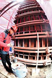 一位施工人員正在更換煤球,以保證穩定地為剛澆注的混凝土保溫。 進入冬季以來,青龍高速公路第十三標段為確保施工進度和質量,對現場澆注的混凝土橋墩進行外面加裝保溫層,里面采取電熱毯和火爐加溫等方式來保證混凝土強度和外表光滑度。