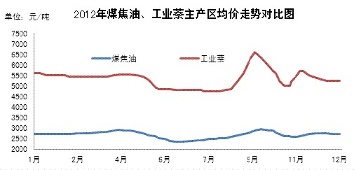 圖3 2012年工業(yè)萘、煤焦油價格走勢對比圖
