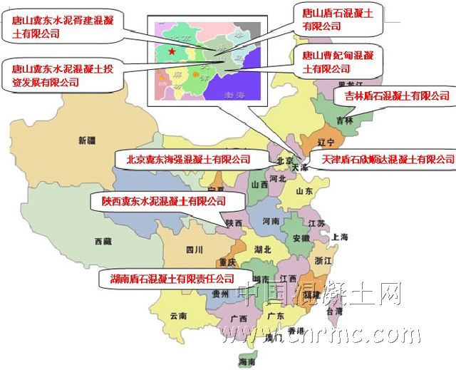 從公司09年年報獲悉,目前冀東發(fā)展集團(tuán)投資參股9家混凝土公司,分別為:唐山冀東水泥胥建混凝土有限公司;唐山盾石混凝土有限公司;唐山冀東水泥混凝土投資發(fā)展有限公司;唐山曹妃甸混凝土有限公司;吉林盾石混凝土有限公司;北京冀東海強(qiáng)混凝土有限公司;天津盾石欣順達(dá)混凝土有限公司;陜西冀東水泥混凝土有限公司;湖南盾石混凝土有限責(zé)任公司。分布區(qū)域圖如下: