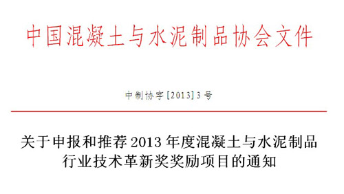 按照《混凝土與水泥制品行業技術革新獎管理辦法》的有關規定,經研究,決定2013年度混凝土與水泥制品行業技術革新獎以“建華管樁杯”冠名,冠名單位為建華管樁集團。現將2013年度申報和推薦工作的安排通知如下: