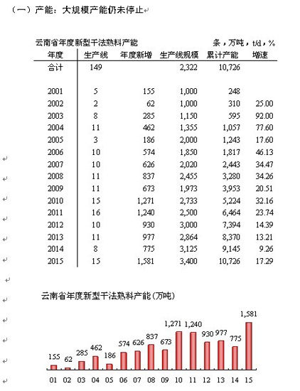 從圖表中可以看出云南省新型干法熟料產(chǎn)能的發(fā)展進程: