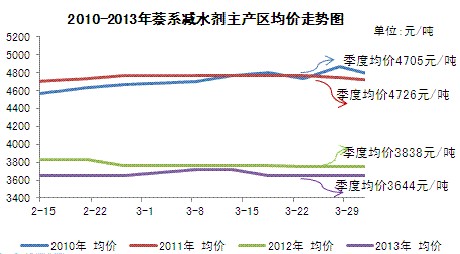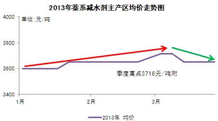 2013年第一季度,國內(nèi)減水劑市場整體波動有限,市場整體呈現(xiàn)弱勢震蕩的態(tài)勢。