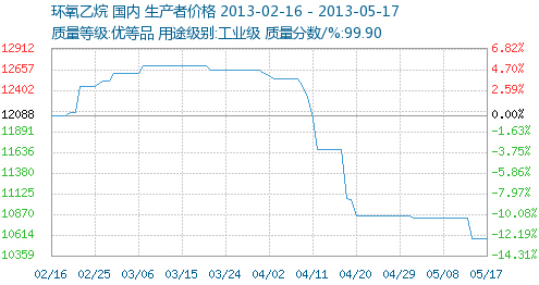 一、上周(5月13日-17日)國內(nèi)環(huán)氧乙烷價格曲線