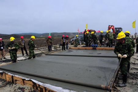 據(jù)機(jī)場(chǎng)綜合項(xiàng)目部經(jīng)理馮春秀介紹,機(jī)場(chǎng)跑道建設(shè)要求十分嚴(yán)格,不得有一絲馬虎,飛機(jī)起飛時(shí)的重量,約有幾噸重,飛機(jī)輪胎對(duì)地面有很大的壓力。跑道要承受飛機(jī)的重量,以及飛機(jī)降落時(shí)的巨大沖擊力。阿壩紅原機(jī)場(chǎng)跑道由混凝土筑成,跑道厚度32厘米,能把飛機(jī)的載荷承擔(dān)在較大面積上,承載能力強(qiáng)。現(xiàn)在這條3600米×45米的跑道和一條垂直聯(lián)絡(luò)道,每天澆筑混凝土3艙,每一艙長(zhǎng)150米、寬4.5米,厚32厘米,照這個(gè)進(jìn)度,今年7月底可以完成跑道混凝土澆筑施工。