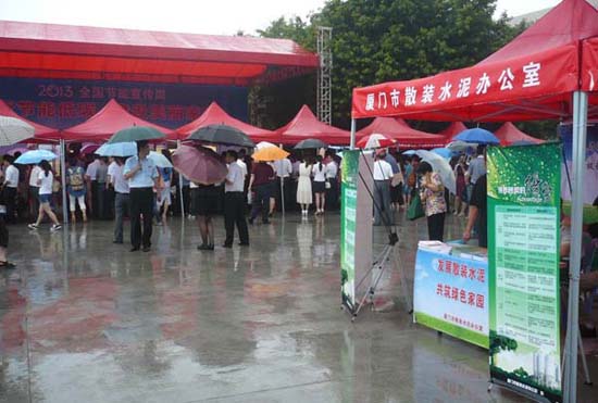在廈門市節能宣傳周活動上,市政府李棟梁副市長親臨會場并宣布活動開幕,市節能辦主任、市經發局局長柯志敏介紹了廈門市今年節能宣傳周活動的具體內容。廈門市散裝水泥辦公室等市企事業節能辦成員單位及近萬市民踴躍參加了啟動日的活動。