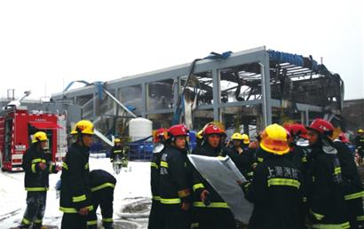發(fā)生爆炸的上海盛瀛化工有限公司位于金山第二工業(yè)區(qū)內(nèi)的金環(huán)路398號(hào)。市應(yīng)急聯(lián)動(dòng)中心接警后,立即調(diào)派20個(gè)消防中隊(duì)68輛消防車趕赴現(xiàn)場撲救,火勢于15時(shí)02分被控制。為防止有毒有害物質(zhì)產(chǎn)生,現(xiàn)場保持穩(wěn)定燃燒,消防在旁冷卻防爆。