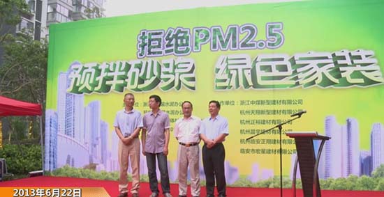 6月22日上午,為惠及百姓家庭,浙江省散裝水泥辦公室、杭州市散裝水泥辦公室聯(lián)合浙江中煤、杭州天翔、杭州正裕、杭州晨宇、臨安正翔、臨安宏星等預(yù)拌砂漿生產(chǎn)企業(yè)舉辦“拒絕PM2.5 預(yù)拌砂漿 綠色家裝——贈送百噸預(yù)拌砂漿進百戶家庭”活動在廣宇上東城正式落幕。本次活動的主要目的是讓百姓盡早了解、接受預(yù)拌砂漿,提升家庭裝修品質(zhì)。杭州市經(jīng)信委副主任許虎忠和浙江省散裝水泥辦公室主任陳利永出席并向現(xiàn)場觀眾宣傳預(yù)拌砂漿的優(yōu)點。