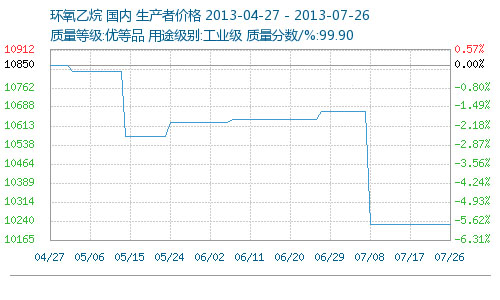 華東地區環氧乙烷近3個月價格一路走低,目前圍繞10000元/噸小幅波動,創出2012年6月份以來的新低。