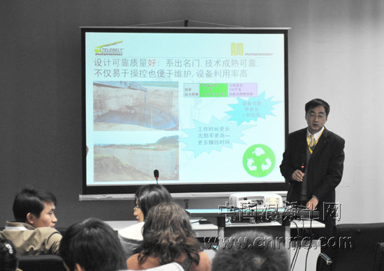 皮帶輸送機事業部經理朱其峰先生對使用皮帶輸送機布料混凝土的案例作相關介紹