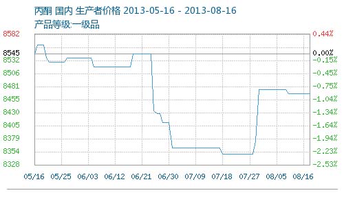 原油價格近期大漲,紐約交貨的輕質原油期貨價格報于107.33美元/桶,較周一105.97美元/桶上漲1.28%。上游純苯外盤連續走高,國內市場也有所探漲,中石化上調至9100元/噸,原料丙烯上周國內市場價格小幅下滑。下游MIBK行情一直未有起色。廠家方面,藍星哈爾濱石化、高橋石化、惠州忠信石化近期酚酮裝置先后檢修。丙酮港口庫存充足。